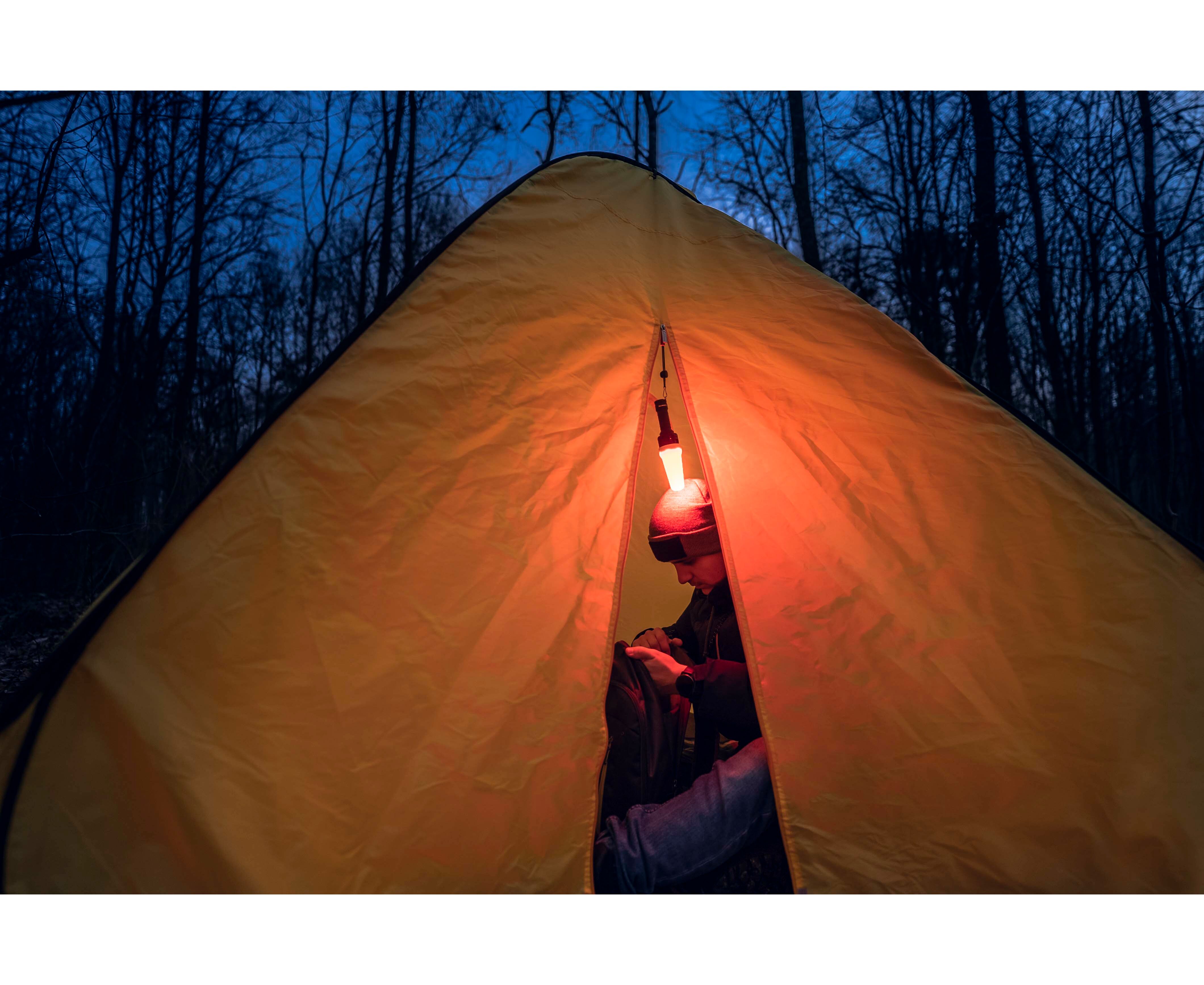 - Red and green light outputs expand the varieties of application inside the tent and around the campsite